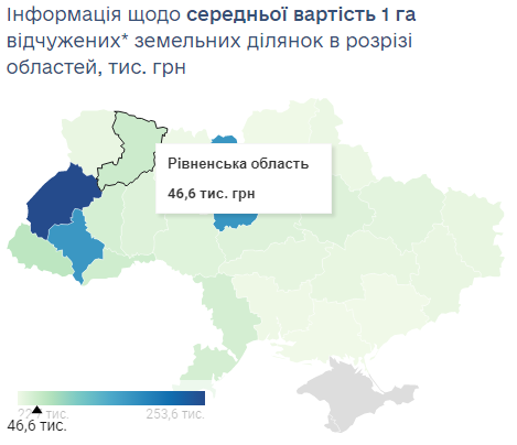 На Рівненщині продали близько пів тисячі гектарів сільськогосподарських земель. Середня вартість одного гектара 46,6 тисяч гривень.