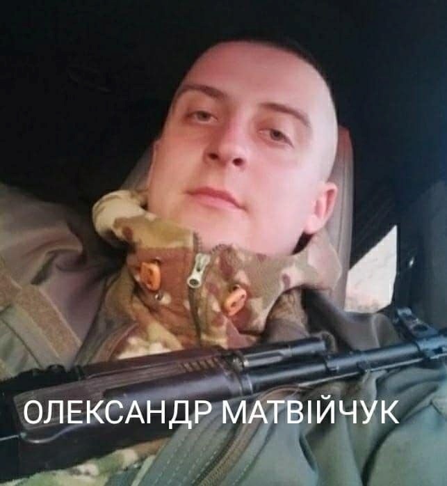25-річний старший солдат Олександр Матвійчук народився у Заболотті. У 2016 році завершив ПТУ ВП РАЕС за спеціальністю електромонтер. Із 2018 по 2021 рік служив старшим пожежним команди на артилерійській базі боєприпасів. Упродовж 2019-2020 років брав участь в АТО/ООС. 26 лютого 2022 року Олександра мобілізовано для захисту України, зараховано до складу 104-ої окремої бригади ТрО. У 101-й ОБрТрО служив на посаді гранатометника у стрілецькій роті. У цій же бригаді служить батько Олександра, а його брат зараз несе службу у нашій в/ч 3045.
