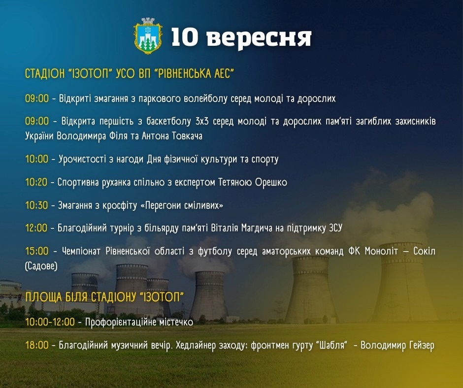 10:00 – Урочистості з нагоди Дня фізичної культури та спорту;