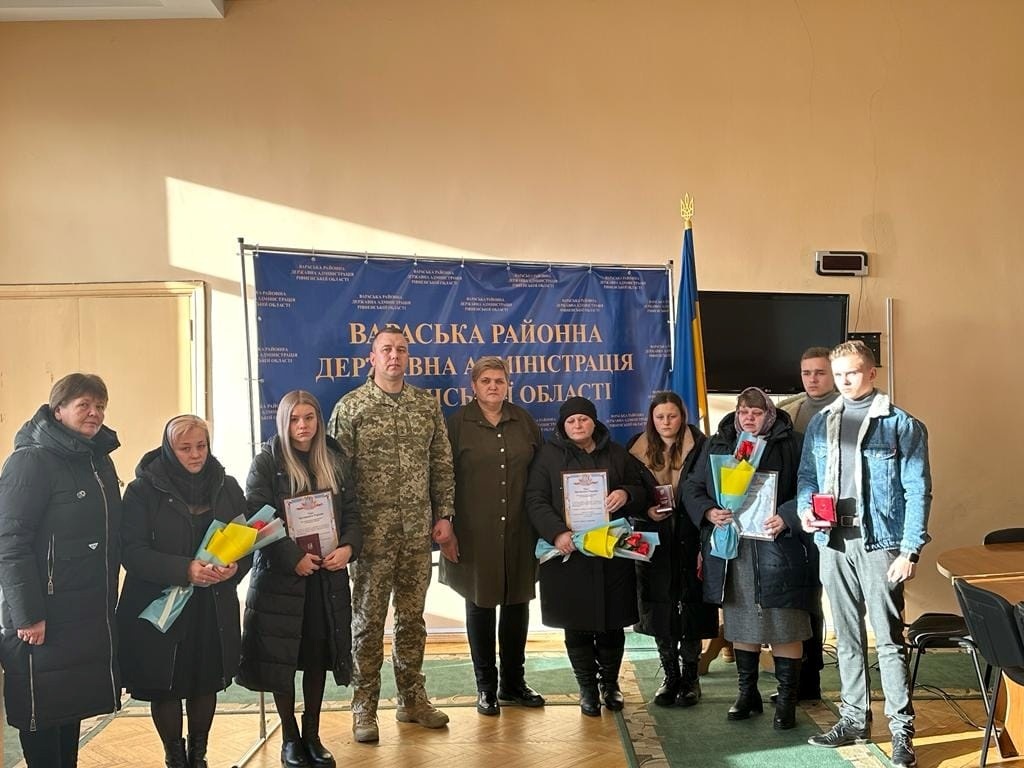 Державні нагороди родинам наших загиблих військових та невеличкі сувеніри для дітей вручила начальниця Вараської РВА Людмила Мариніна.