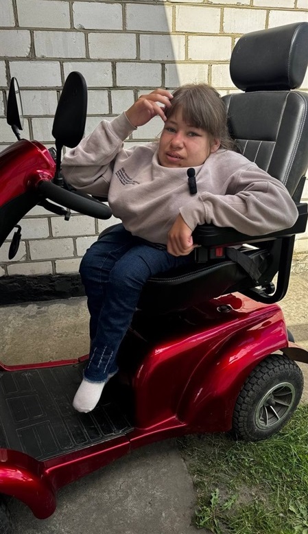 Рік тому соцслужби дали Даринці скутер – гарненьку червоненьку машинку, опанувати управління якою саме дідусь і допоміг. Пишається родина, що Даринка вже аж у центр села їздить! До слова, саме дідусь і правилам дорожнього руху онуку вчить.