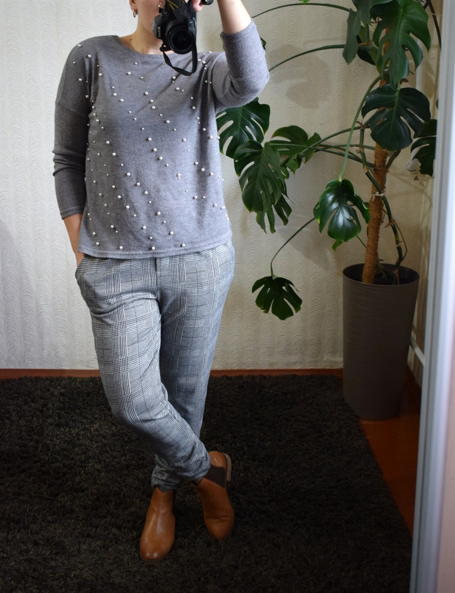 Знову ж таки брюки Next за 36 гривень плюс чоботи за 13 гривень і кофтина з бусинами з останніх колекцій ZARA - за 41 гривню.