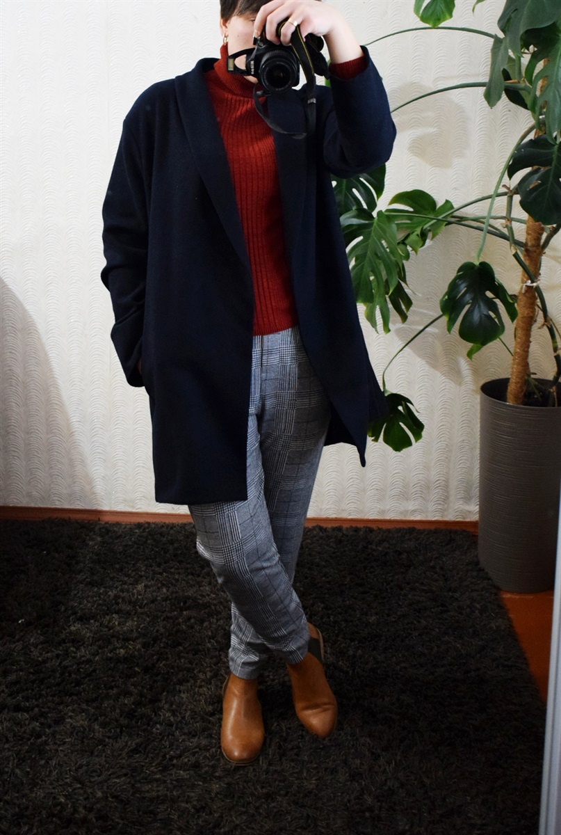 Скомпонувала пальто із брюками Next за 36 гривень і гольфом – водолазкою за 15 гривень, придбаним теж в останні дешеві дні.