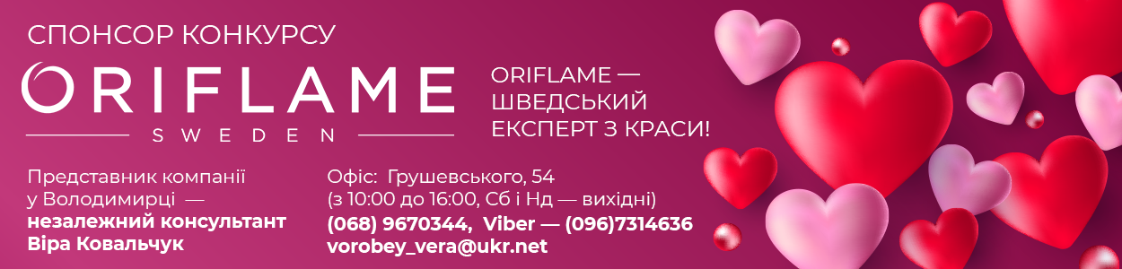Нагородження переможців: 14 лютого, 12.00 год., офіс «ORIFLAME» Володимирець, Грушевського, 54